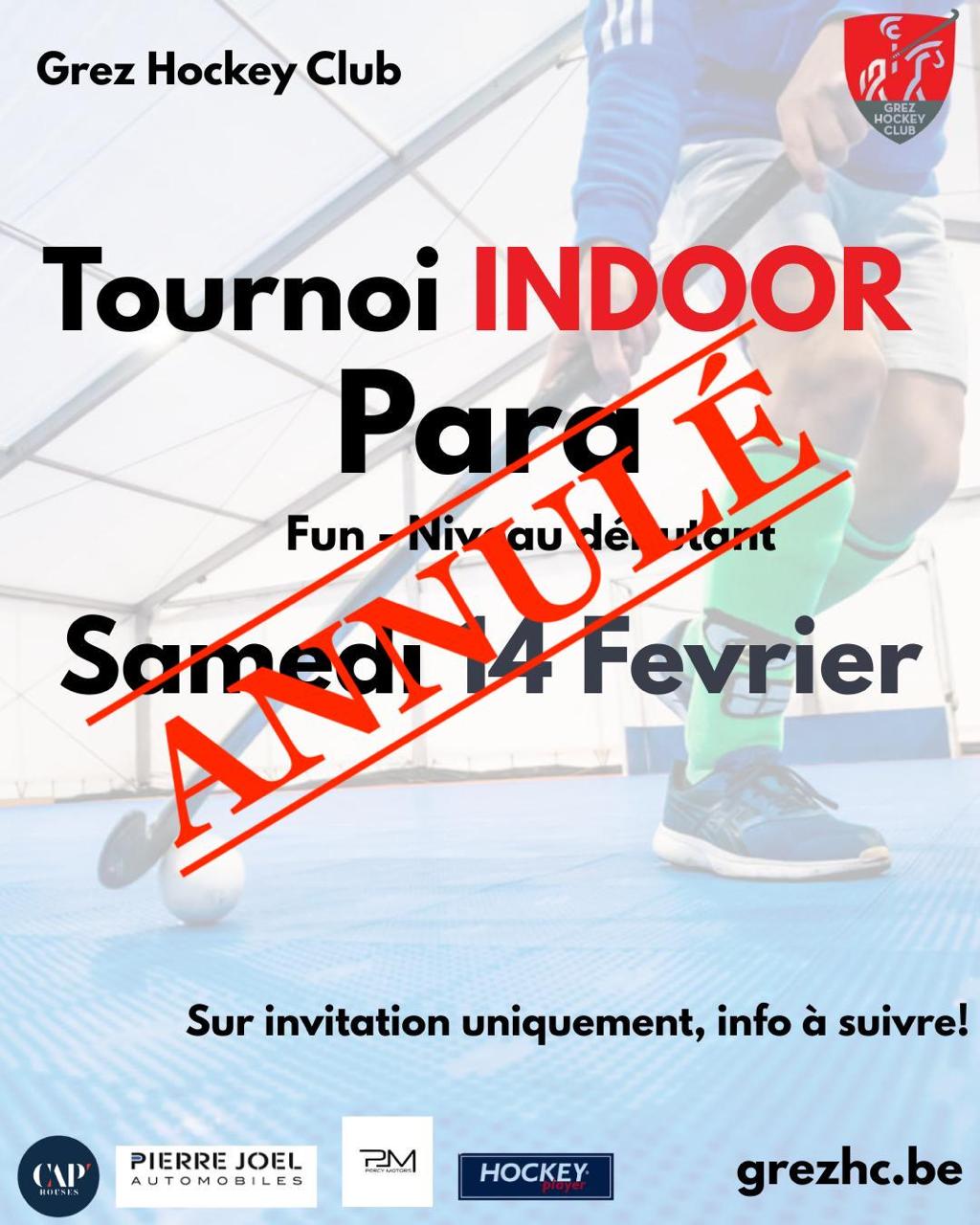Pendant la trêve hivernale (décembre-janvier-février) la compétition Outdoor s’arrête et laisse place au hockey Indoor. Comme son nom l’indique, le hockey Indoor est joué à l’intérieur. Le terrain et les goals sont les mêmes que pour le handball ou le futsal, avec la mise en place de bommes sur les côtés pour éviter les sorties et favoriser le jeu rapide.